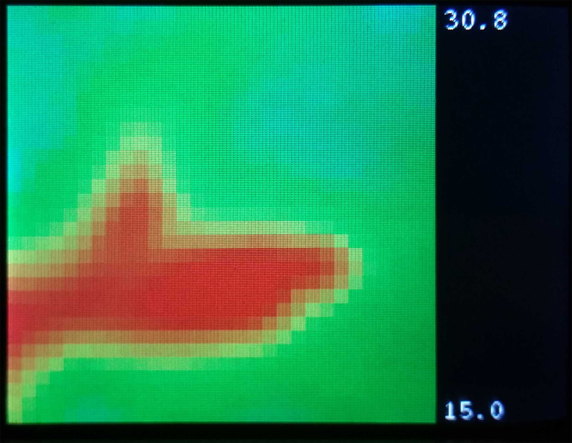 Der Sensor besteht aus einem 8x8 Sensor-Array welches ich mit Interpolation auf 32 x 32 "Pixel" erweitert habe.