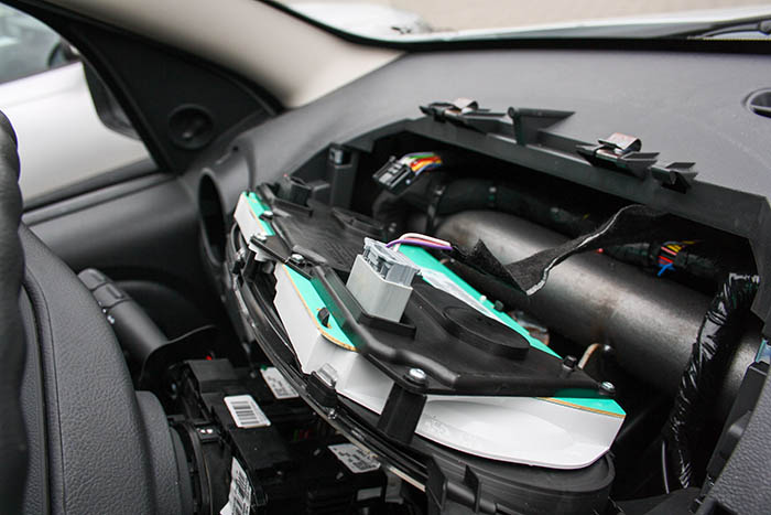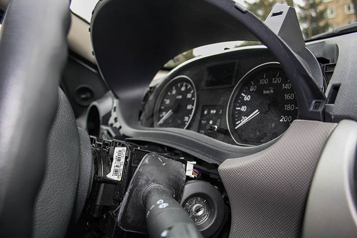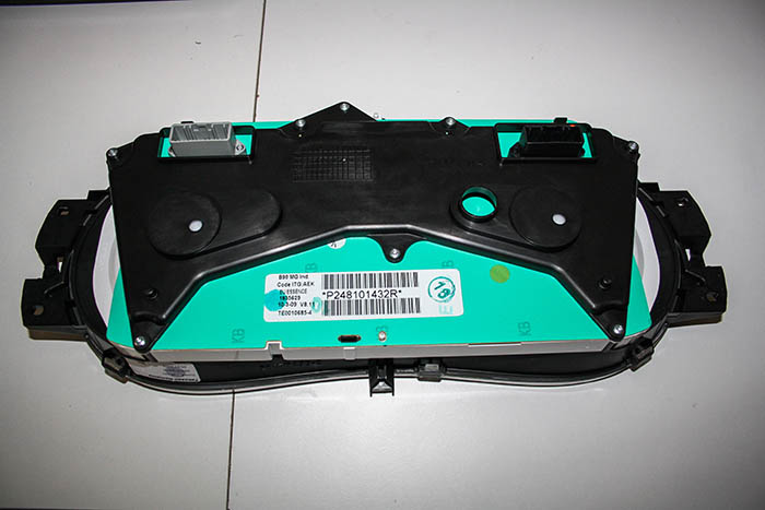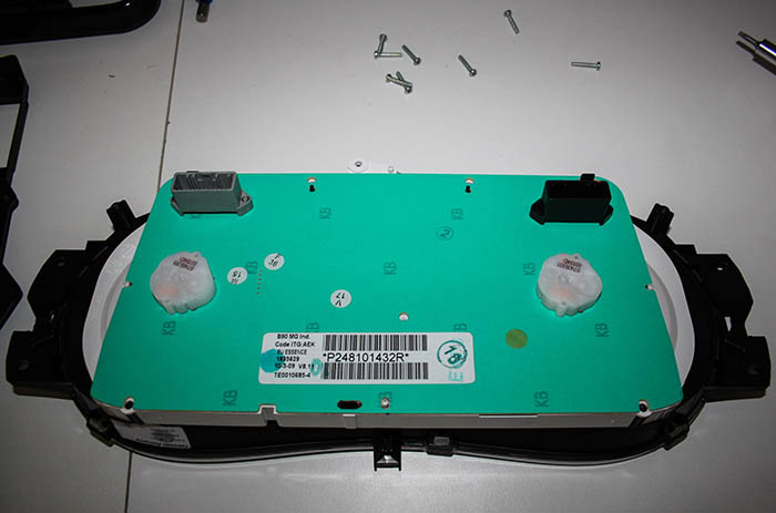 Da bei Dacia alles relativ einfach zusammengebaut ist, lies sich das Armaturenbrett leicht bis auf die Cockpit-Einheit zerlegen. Diese konnte geöffnet werden und auf der Platine die entsprechenden LEDs ausgetauscht werden.